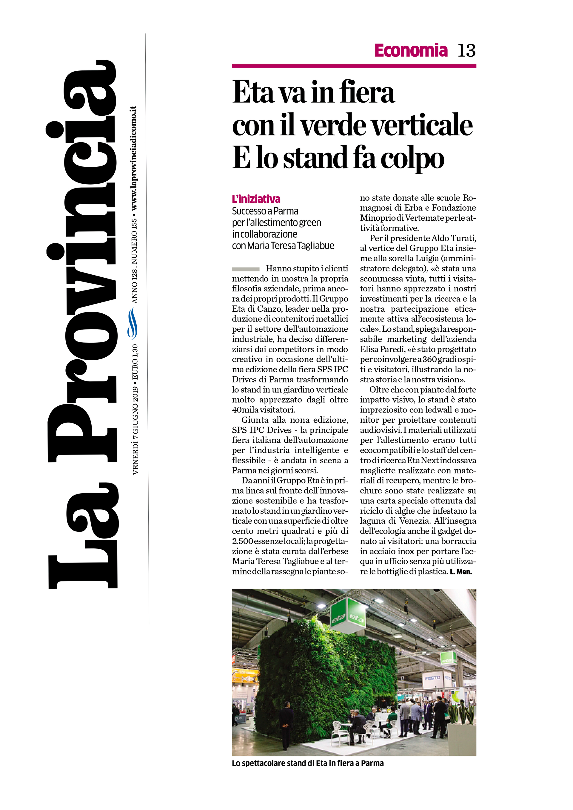 Nel 2019 si è voluto "esporre" i concetti che animano la filosofia dell'azienda, tra questi la grande vicinanza all'ambiente, Per questo si è voluto costruire una torre con centinaia di piantine, un grande schermo inserito nel verde replicava una cascata e proponeva le Keyword della strategia. Lo stand ha avuto una grande eco sulla stampa, sia locale che internazionale.