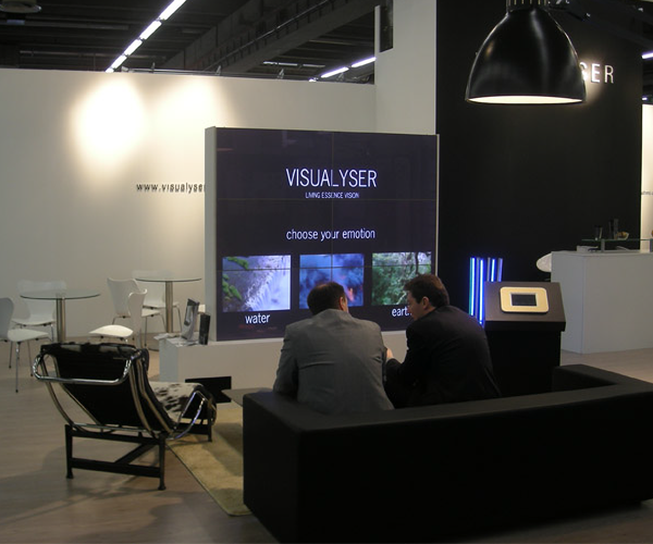 Lo stand di circa 200 mq è stato allestito con una architettura molto clean. Grande spazio si è dato a dei tavolii touch che, grazie alla digitilizzazione di tutta la produzione, sono stati utilizzato dai visitatori.