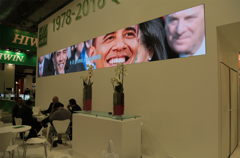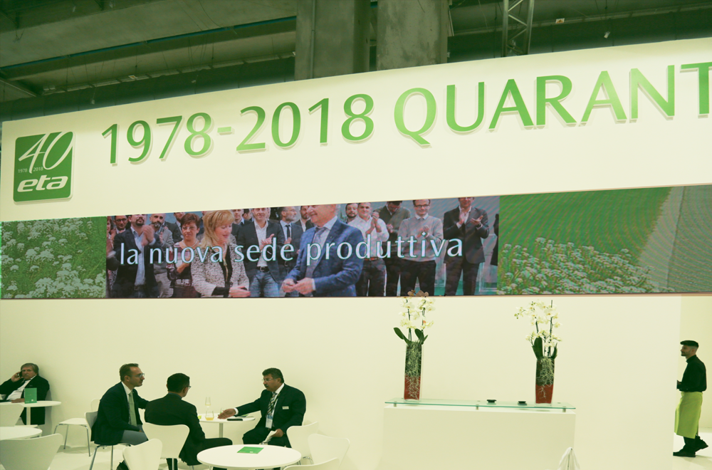 Nel 2018 la ETA ha compito 40 anni. Nello stand è stato montato un grande video 15 metri per 1 mt di altezza. Sul video scorrevano quarantanni di cronaca e storia inserendo nel racconto gli eventi importanti per l'azienda. Ovviamente le immagini collegate agli avvenimenti sportivi (leggi Valentino, Ferrari, Milan e Juventus) sono stati i più applauditi.