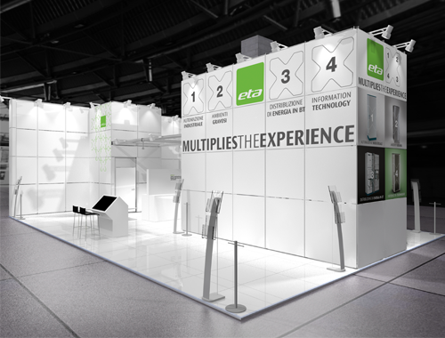 La grande difficoltà nel progettare uno Stand per questa macchine è che queste macchine devono funzionare in quanto i visitatori più che "vedere" vogliono "provare". Quindi nessun pavimento rialzato per nascondere cavi, elettricità da distribuire, ma anche aria compressa ed aspirazione. Bisogna quindi adottare uno stile industriale.