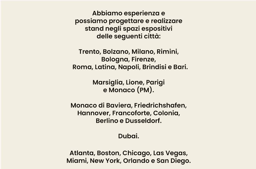 Il contratto che stipuliamo con gli allestitori prevede che lo stand sia consegnato finito e pulito la sera di due giorni prima dell'apertura. Eccone un esempio.