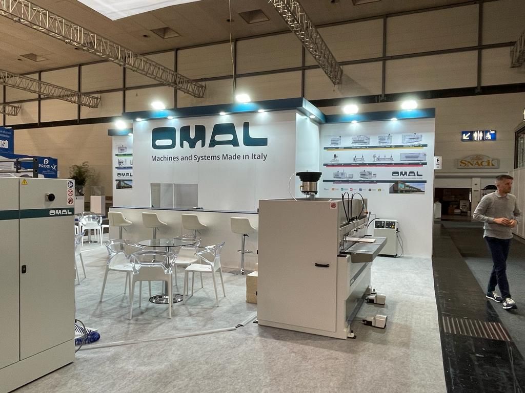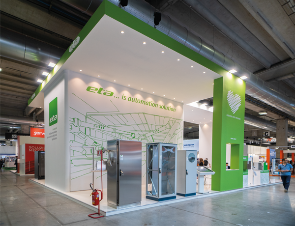 La grande difficoltà nel progettare uno Stand per questa macchine è che queste macchine devono funzionare in quanto i visitatori più che "vedere" vogliono "provare". Quindi nessun pavimento rialzato per nascondere cavi, elettricità da distribuire, ma anche aria compressa ed aspirazione. Bisogna quindi adottare uno stile industriale.